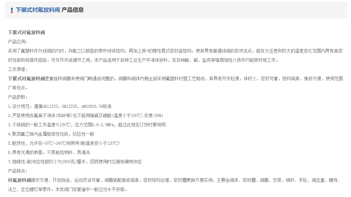 下展式衬氟放料阀