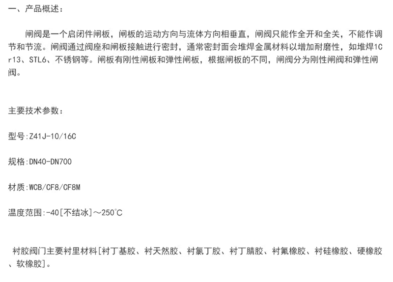 Z41J-16C衬胶闸阀