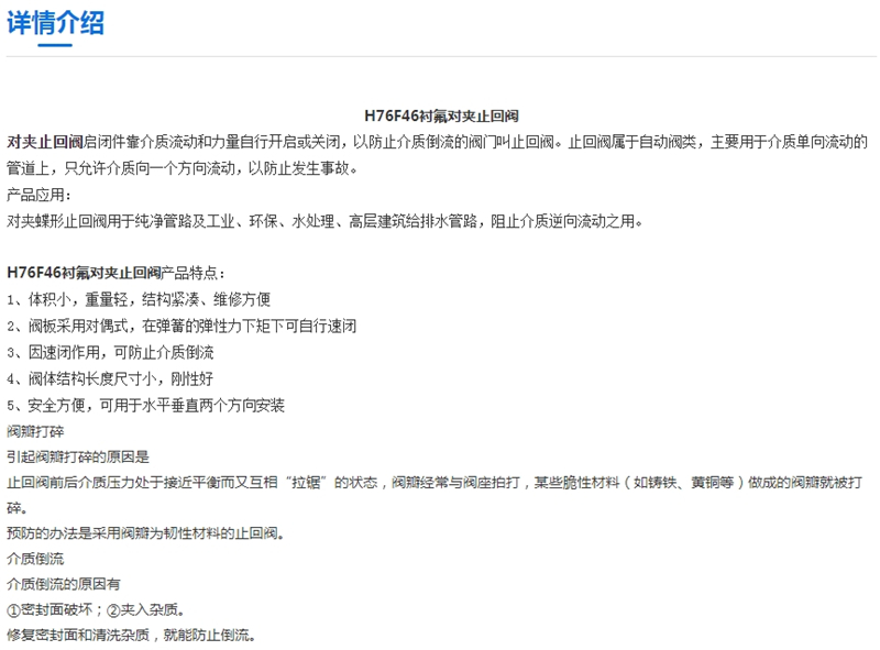 H76F4-16P不锈钢衬氟对夹止回阀